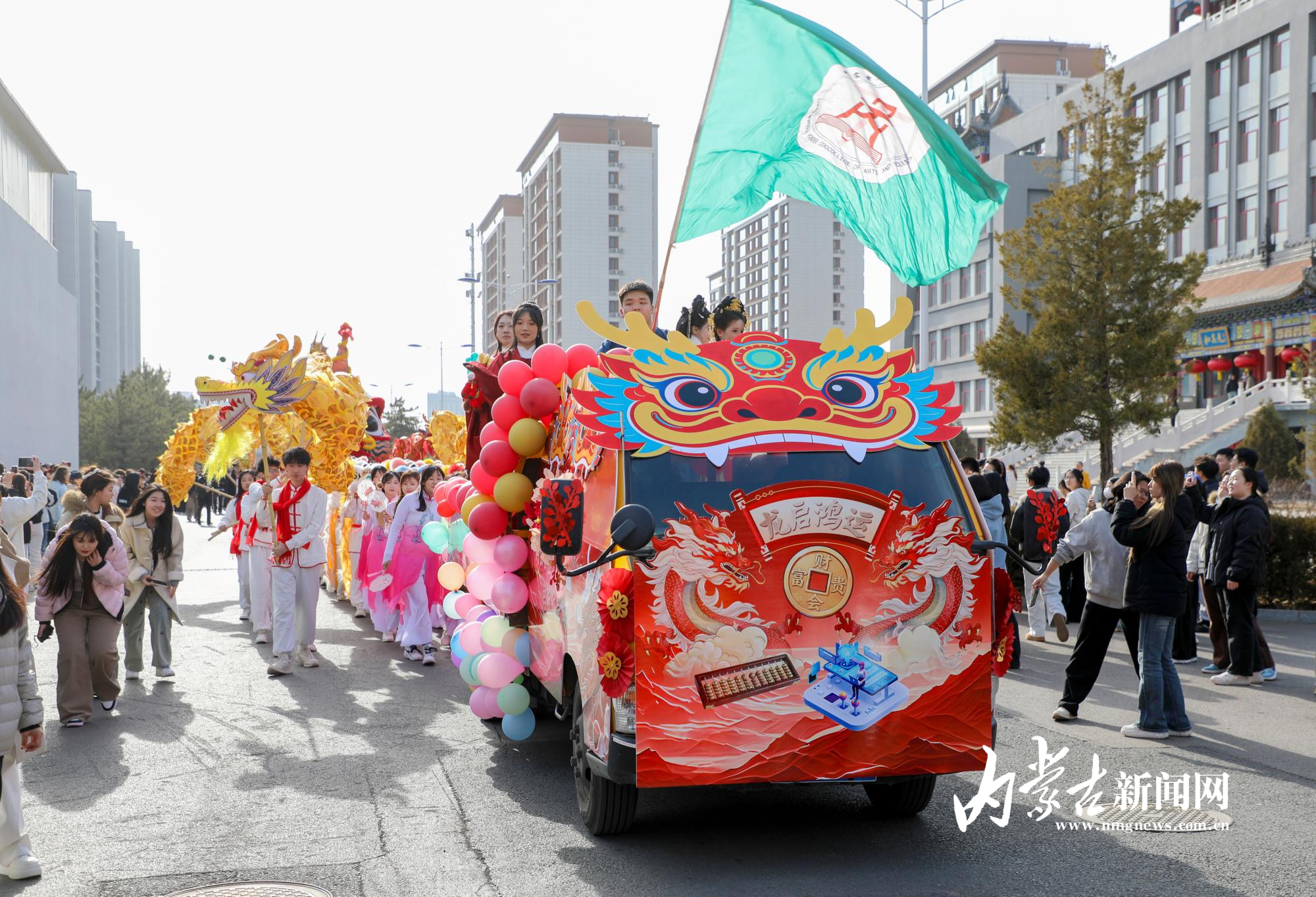 3月20日,為深入傳承中華優(yōu)秀傳統(tǒng)文化,內(nèi)蒙古鴻德文理學(xué)院舉辦“龍?zhí)ь^ 共同心”主題民俗活動,花車巡游、踩高蹺、扭秧歌、舞龍舞獅、安代舞、腰鼓等特色節(jié)目輪番上演,校園內(nèi)處處洋溢著喜慶祥和的節(jié)日氛圍。攝影/草原云·內(nèi)蒙古新聞網(wǎng)首席記者 牛天甲